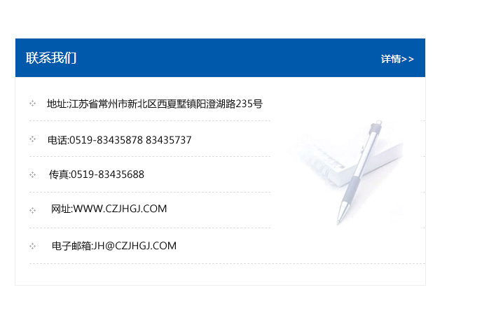 地址:常州市新北區友邦商務大廈1幢16、17層  電話:0519-85101652  傳真:0519-85112595  郵編:213022  網址:www.cz-jiayue_cn.cskaiheng.com  郵箱:xiajifengaa@163.com